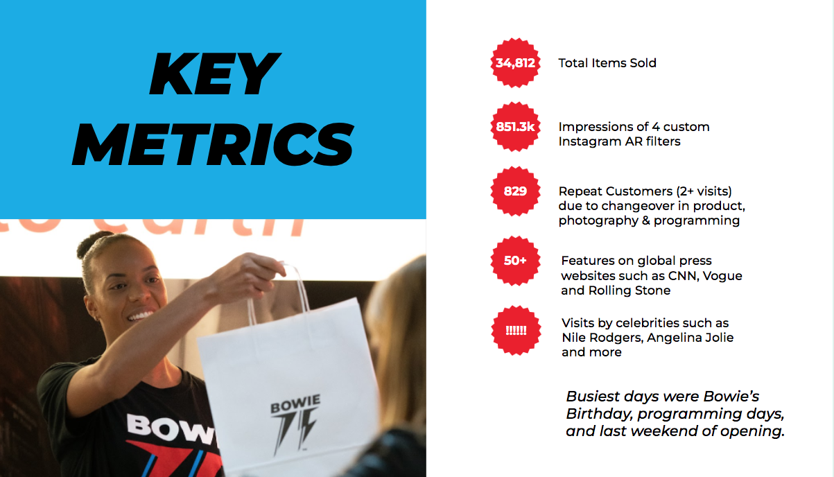 To differentiate ourselves, we embodied the Bowie state of mind—the weird and glittery, theatrical and elegant, joy and curiosity— and combined it with creative technology, gamification and a bold environmental design. By balancing retail merchandise with interactivity, it created an exploratory experiences with something to look at, pick up or engage with in every corner and nook.